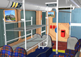 El interior del tranvía está concebido como un espacio diáfano, en el que el viajero puede desplazarse de extremo a extremo libremente y sin obstáculos. La distribución de asientos combina disposiciones longitudinales para aprovechar el espacio sobre bogie, con disposiciones transversales que aumentan el número de plazas sentadas, de acuerdo a lo especificado por cliente.