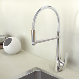 Respecto a sus opciones de grifería para la cocina, destaca el grifo extraíble que permite libertad total de movimientos. Se trata de una reinterpretación de la grifería de cocina profesional de manera elegante caracterizada por su soporte de resina blanca o negra y la aúsencia de muelle, prestando ligereza y facilidad de limpieza.