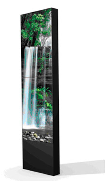 Por otro lado, encontramos el tótem interactivo SLIM. El estudio Activa Design ha realizado este producto lo más estrecho posible. Con la pantalla a una sola cara, que se adapta a las necesidades del cliente, permitiendo un alto nivel de personalización. El diseño del tótem y la realización de los frontales en una sola pieza de vidrio de seguridad pintado, transmite una imagen "High-tech" acorde con un producto que dispone de la tecnología más avanzada en medios audiovisuales. Admite pantallas de 32" a 46", en formato Plasma, LCD o LED, luminosidad normal o de alto brillo.