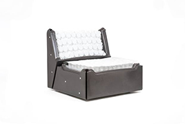 Se ha realizado un nuevo concepto de chasis, donde se ha dado prioridad a la minimización de los elementos estructurales, haciendo que la estructura sea visualmente más ligera. Dentro de este punto se ha prestado especial atención a las dimensiones generales y a la optimización de los movimientos, de modo que aporta soluciones para el correcto confort del usuario. Una de las principales características, es el posicionamiento del lecho en tres paradas programadas, destacando su posición más baja a 24 cm del suelo. Además, se ha diseñado con un sistema de frenado de ruedas integrado, que permite frenar las cuatro ruedas de forma simultánea. Otro aspecto es la posibilidad de integrar un sistema extensible telescópico, que posibilita aumentar la longitud de la cama en 20 cm.
